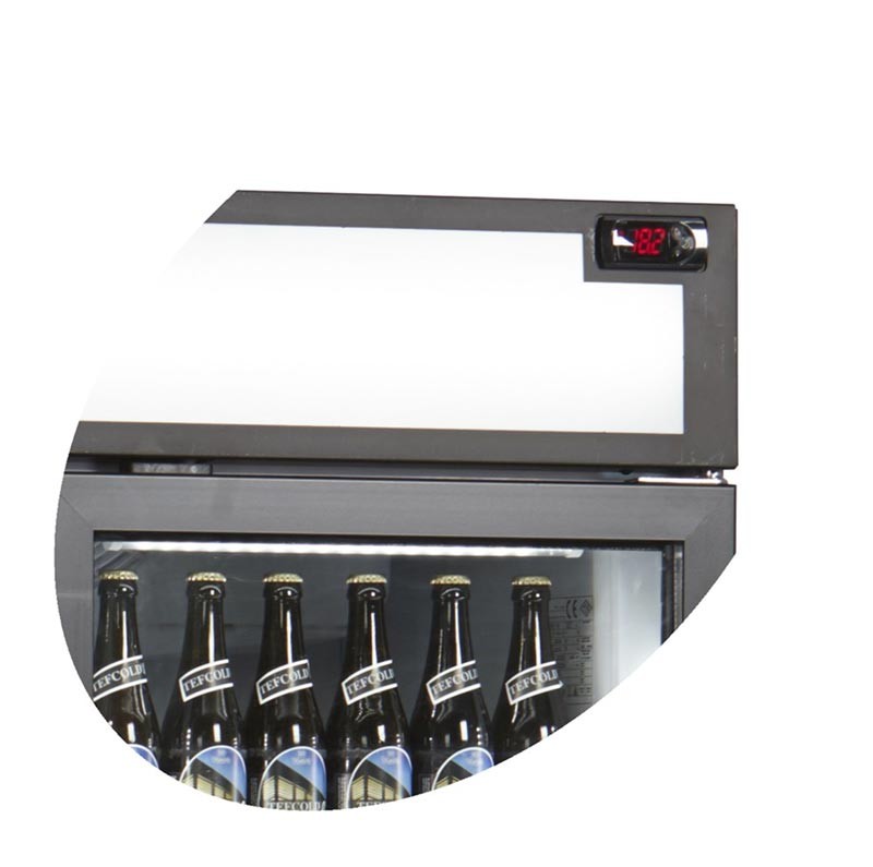 Скляні дверцята, полиці, світлодіодне освітлення в дверцятах, а також обробка в цілому були покращені для оптимізації презентації виставлених у холодильнику продуктів.