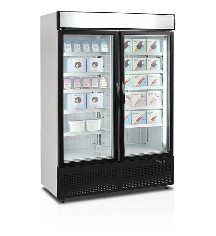 Шафа морозильна зі скляними дверима Tefcold NF5000G призначена для демонстрації та продажу напівфабрикатів, заморожених продуктів, морозива на підприємствах громадського харчування та торгівлі.
