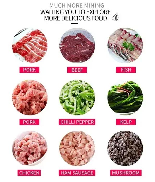Можна нарізати м'ясо на скибочки, смужки чи кубики при потрійному циклі нарізки.