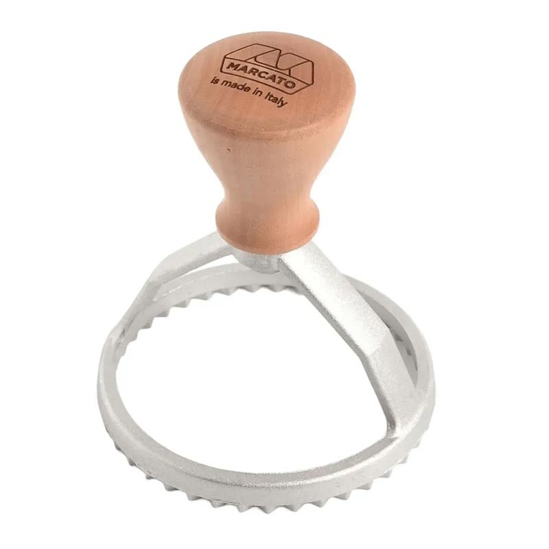 Штамп-вирубування для равіолі, печива Marcato Ravioli Stamp Round 80 мм – це надійний інструмент для створення великих, красивих і рівномірних равіолі. Завдяки діаметру 80 мм. у кожну равіолі міститься щедра порція начинки, що дозволяє експериментувати зі смаками – від класичної рикотти зі шпинатом до м'ясних чи овочевих варіантів. Штамп забезпечує чіткий зріз без залипання тіста. Зубчастий край щільно з'єднує краї тіста, запобігаючи закінченню начинки під час варіння.