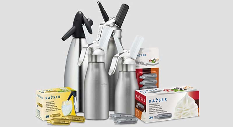 Книга рецептов Kayser с использованием сифонов для крема и горячих блюд.