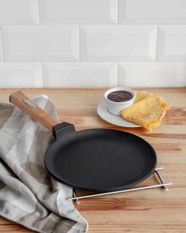Сковорода для млинців Brizoll виготовлена з литого чавуну, ручка виготовлена з вільхи. Чавунна сковорода може використовуватись з усіма видами плит.