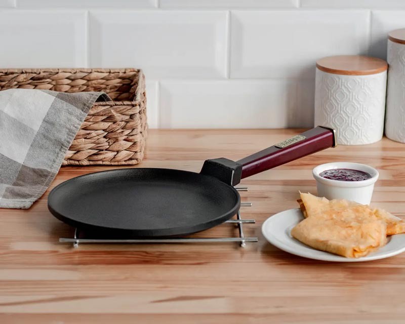 Сковорода для млинців Brizoll виготовлена з литого чавуну, ручка виготовлена з вільхи. Чавунна сковорода може використовуватись з усіма видами плит.