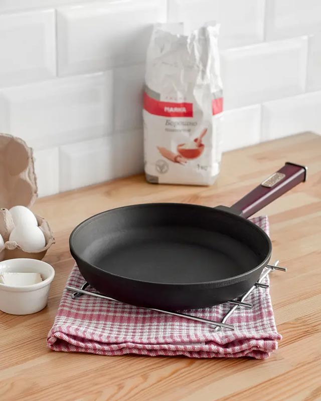 Сковорода Brizoll O2640-P2 виготовлена з литого чавуну, ручка виготовлена з вільхи. Чавунна сковорода може використовуватись з усіма видами плит.