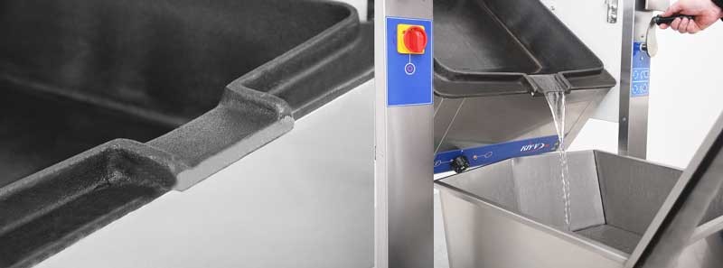 Робоча поверхня, кришка і панель управління виконані з нержавіючої сталі.