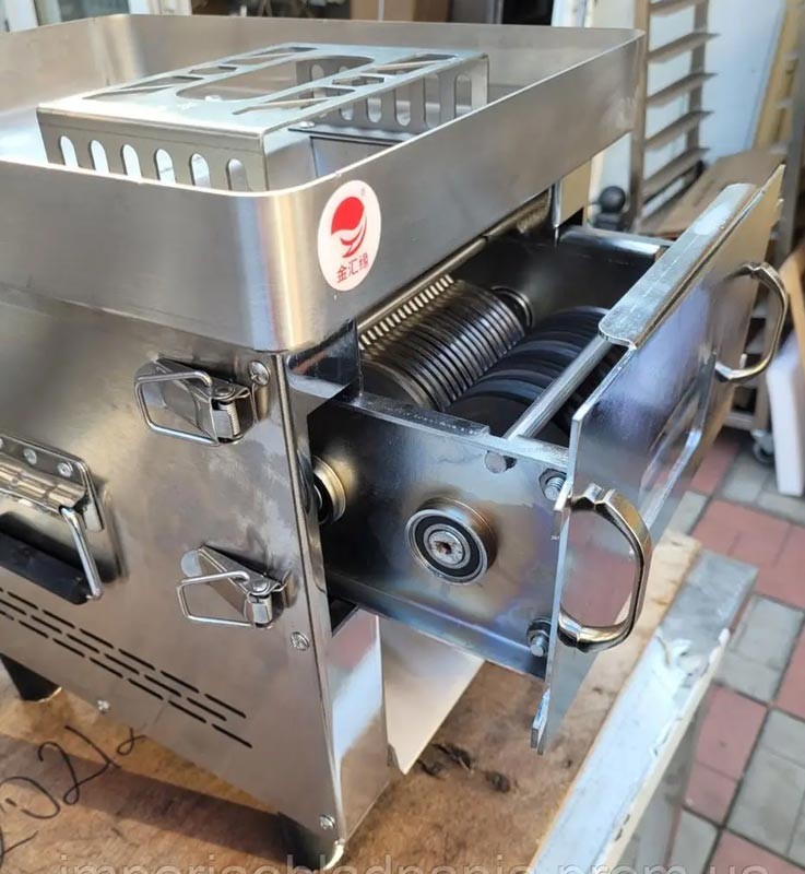 Шпигорізка VEKTOR TX85S 8 мм підійде для нарізки філе, свинячих вух, риби, овочів, будь-якого виду м'яса та сала.