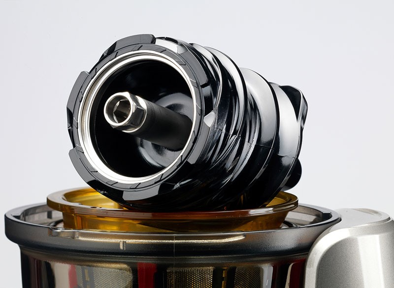 Оновлена конструкція шнека для найкращої переробки волокнистих фруктів і овочів: білої і червоної капусти, шпинату, селери, порею і т.п. При цьому зведена до мінімуму навантаження на шнек і м'якоть залишається під ним, що полегшує приготування живого соку.