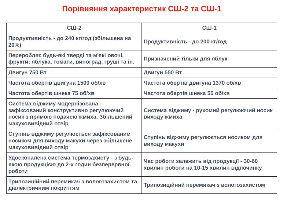 Виробник соковитискача шнекової надає гарантію 12 міс. на модель СШ-1
