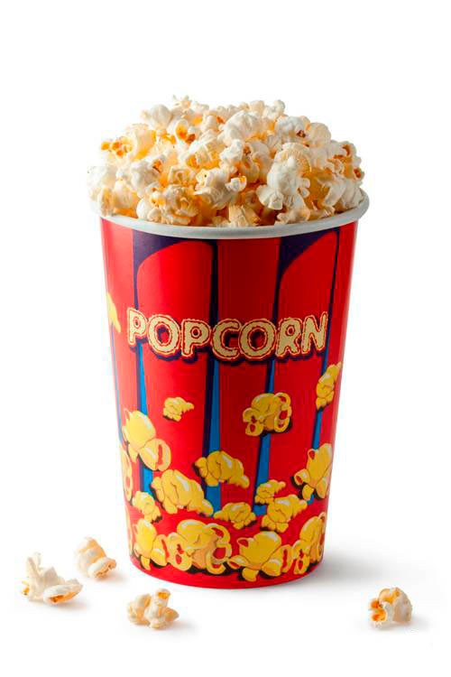 Склянки попкорну виконані в барвистому класичному стилі попкорн.