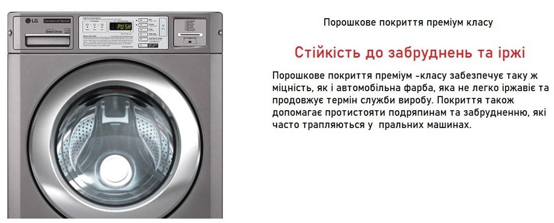 Відповідність вимогам Energy Star . Відповідно до стандартів Energy Star, машини LG для комерційних пралень заощаджують більше енергії, ніж інші вироби у своїй категорії, одночасно підвищуючи ефективність.