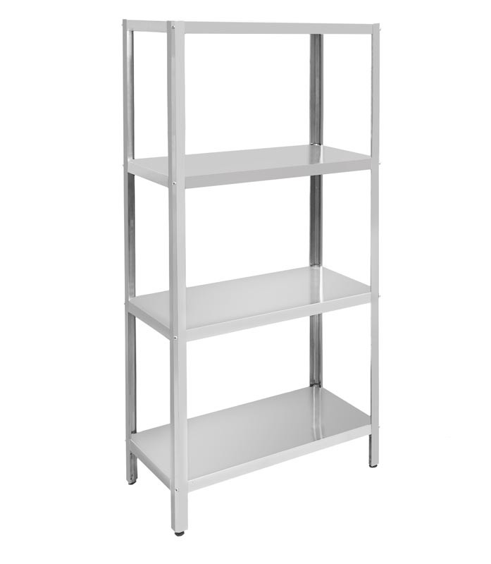 Стелаж з нержавіючої сталі КИЙ-В СЖВ-(Р)-4-4П-600 служить для складування посуду та інвентарю на кухні ресторану, кафе, їдальні.