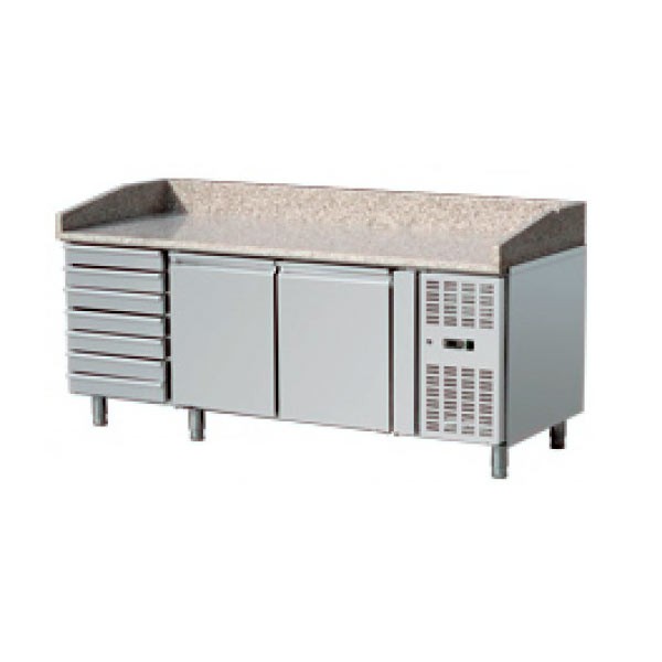 Холодильний стіл для піци Frosty PZ2610TN служить для зберігання заготовок, необхідних для приготування піци. На гранітній поверхні готують красти та укладають начинку