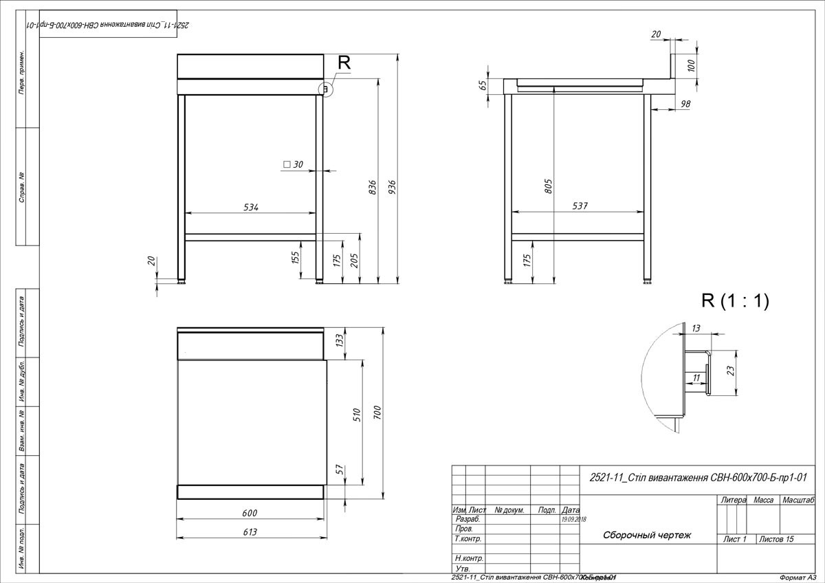 Технічні характеристики Стіл для посудомийної машини Стіл 2521-11