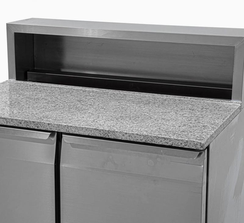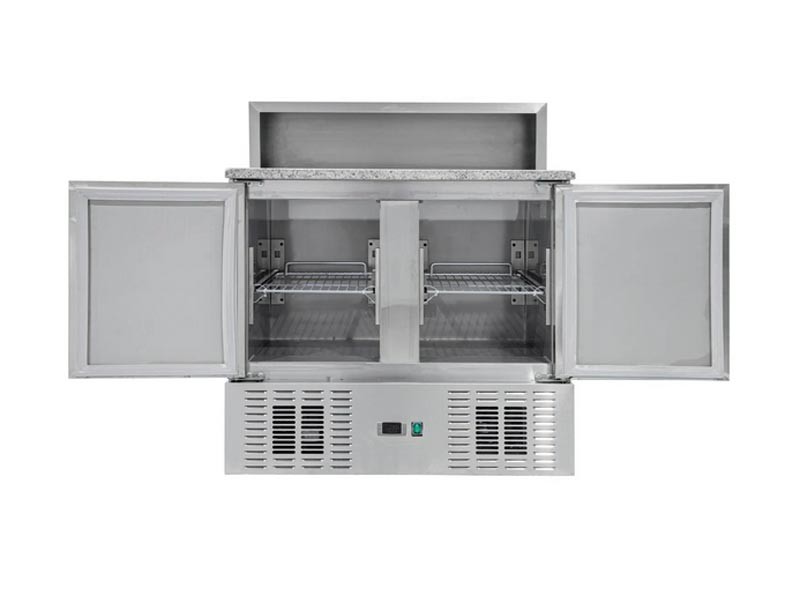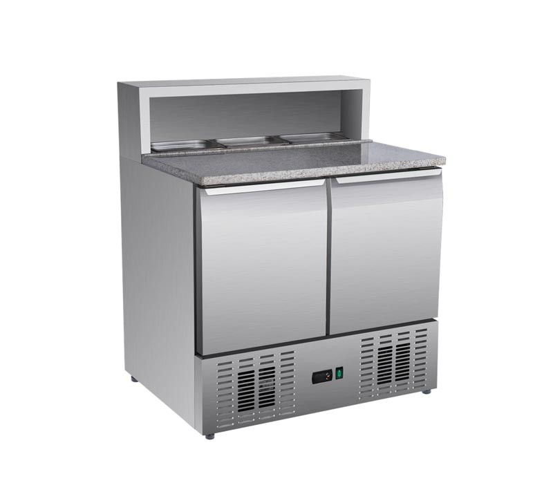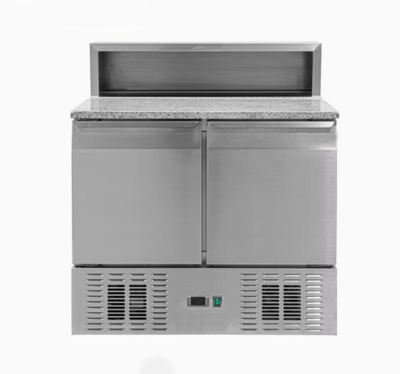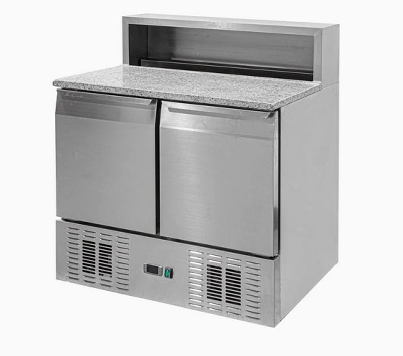 Холодильний стіл Brillis PS900 використовується для зберігання заготовок, необхідних для приготування піци. На гранітній поверхні готують красти та укладають начинку