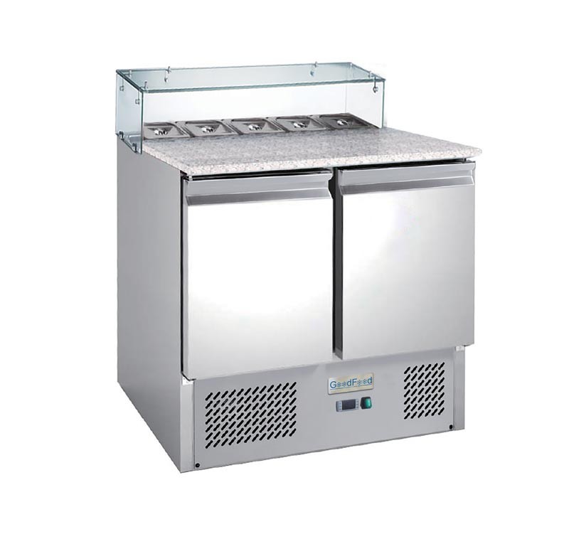 Холодильний стіл солодет GoodFood GF-PS900GT-H6C служить для зберігання заготовок, необхідних для приготування піци. На гранітній поверхні готують красти та укладають начинку