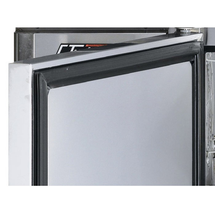 Двері власної конструкції. Оснащені петлями із високоякісної нержавіючої сталі. На корпусі холодильного обладнання використовується ущільнення з АБС – пластику, який покращує теплоізоляцію та не пропускає конденсат. Полегшена конструкція збільшує термін служби дверей, зменшує зношування петель і полегшує плавне відкриття.