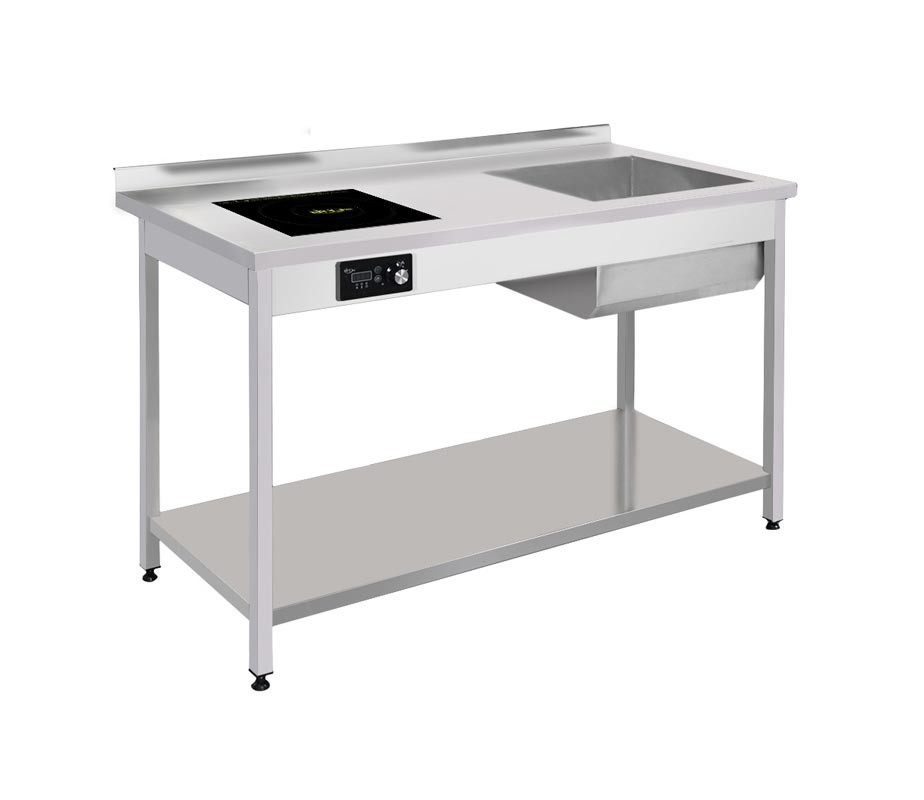 Виробничий стіл-мийка із вбудованою індукційною плитою КІЙ-В СМВК-4-1І. 1С призначена для роботи на кухні ресторану, кафе чи їдальні.