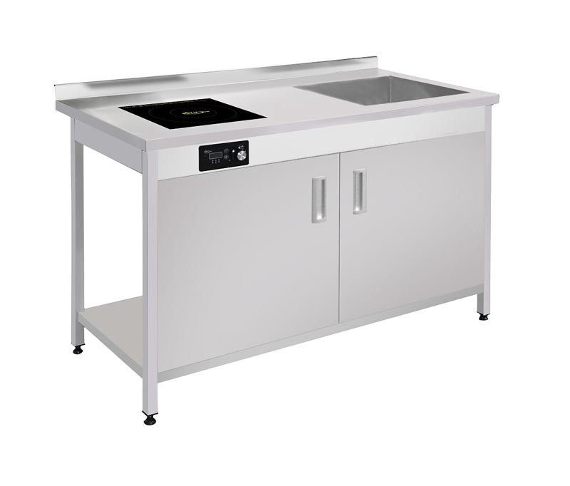 Виробничий стіл-мийка із вбудованою індукційною плитою КІЙ-В СТМВК-4-1І. 1С призначена для роботи на кухні ресторану, кафе чи їдальні.