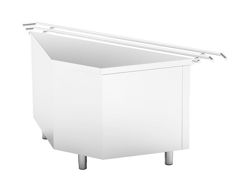 Стіл нейтральний кутовий Orest CS-1.4 використовується при необхідності повороту лінії роздачі при монтажі в праву або ліву сторону.