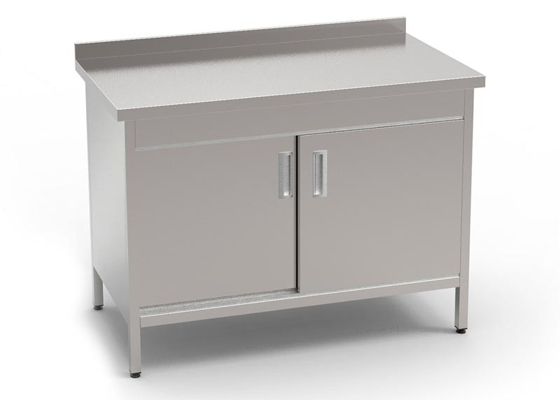 Стіл-тумба з нержавіючої сталі використовується на кухні ресторану, кафе, їдальні