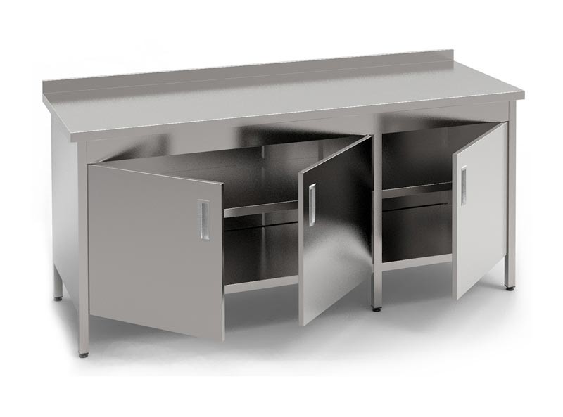 Стіл-тумба з нержавіючої сталі використовується на кухні ресторану, кафе, їдальні