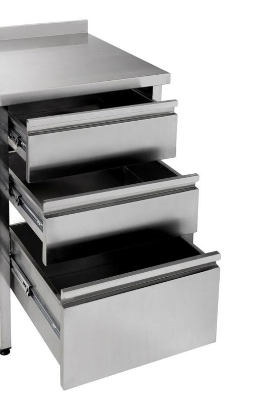 Стіл-тумба з нержавіючої сталі СТВ-3Я-Н-1П може бути виготовлений за ескізами замовника.