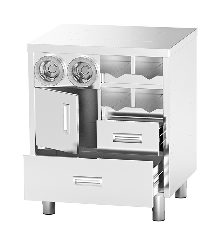 Два висувних ящика для зберігання інвентарю або упаковки.