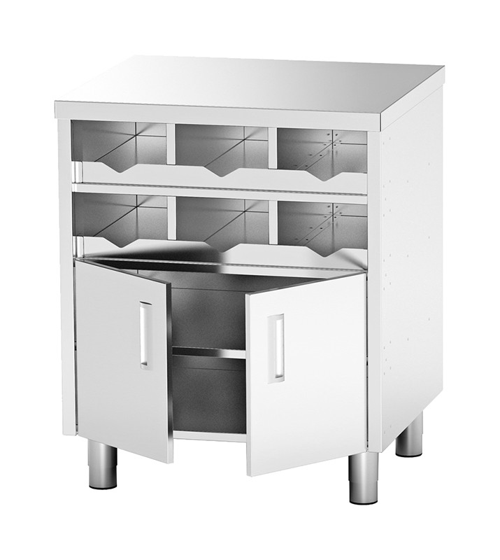 Відділення для зберігання склянок з двома орними дверима і центральної полицею.