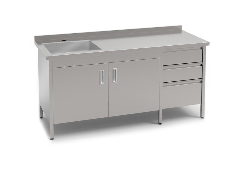 Стіл-тумба з ванною мийною з нержавіючої сталі КИЙ-В СТМВ-1С-2ДР-3Я
