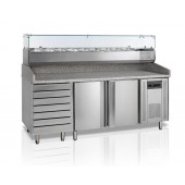 3-х дверний холодильний стіл для піци з гранітної поверхнею і вітриною надбудовою. Габарити: 2045x800х1445 мм. Обсяг: 565 л.