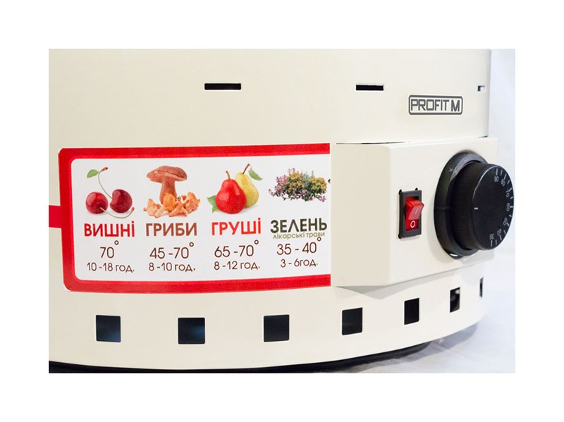 Виробник сушарки для овочів і фруктів компанія Profit M (Profit М) надає гарантію 12 міс. на модель ЄСП-02 слонова кістка