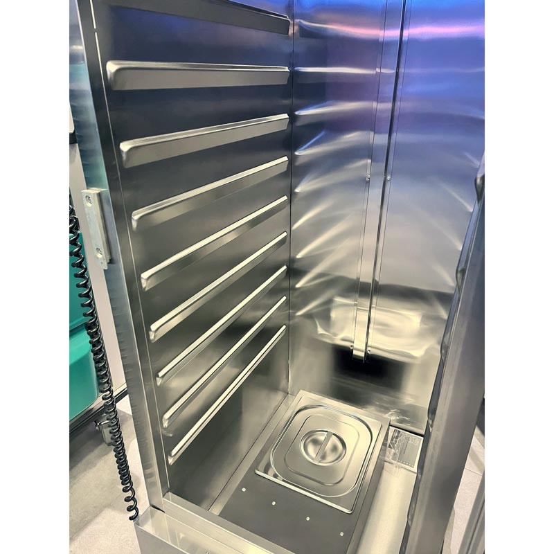 Візок розроблений для інтенсивної експлуатації в ресторанах, готелях, їдальнях та на виїзних заходах, де важливі мобільність, гігієнічність та стабільна температура зберігання.