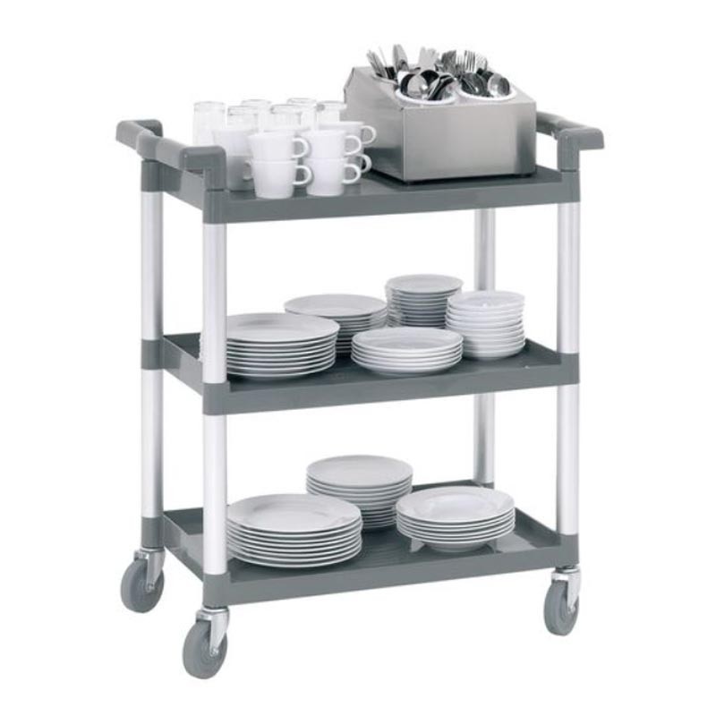 Сервірувальний візок Bartscher A300049 служить для переміщення готових страв, напоїв та посуду, а також для винесення брудного посуду із зали. Візок використовується в ресторані, їдальні, готелі.