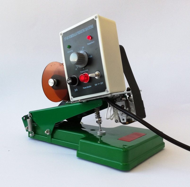 Для чіткого відтиску дати через термотрансферну стрічку, необхідно виставити температурний режим і почекати 5-7 хв. щоб цифри досягли потрібної температури. Після прогрівання друкує касети, виставляємо оптимальний крок прокрутки стрічки за допомогою регулювальної гайки.