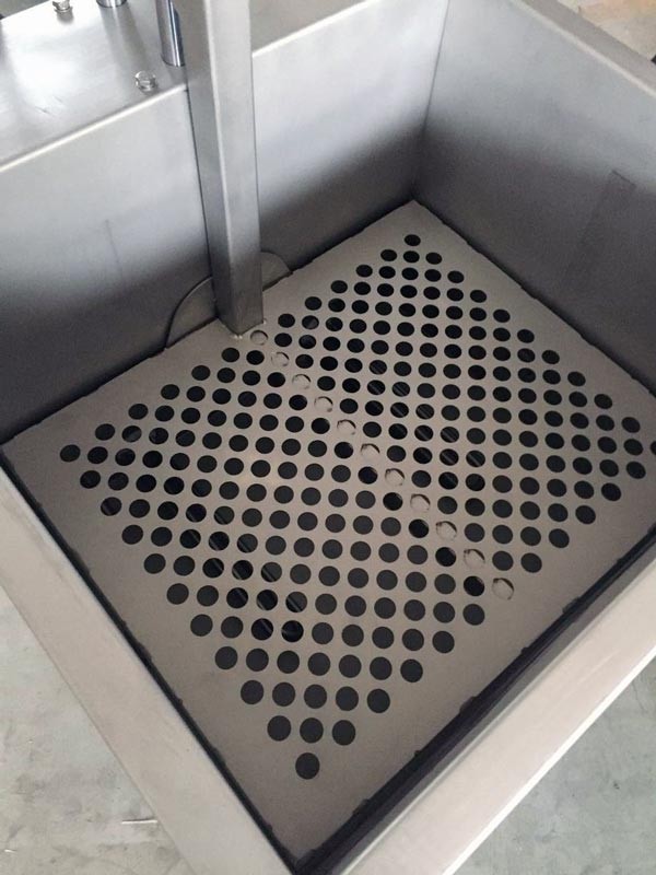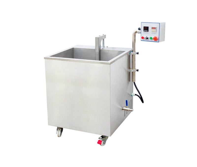 Платформа з продуктом занурюється в танк із гарячою водою на короткий час.