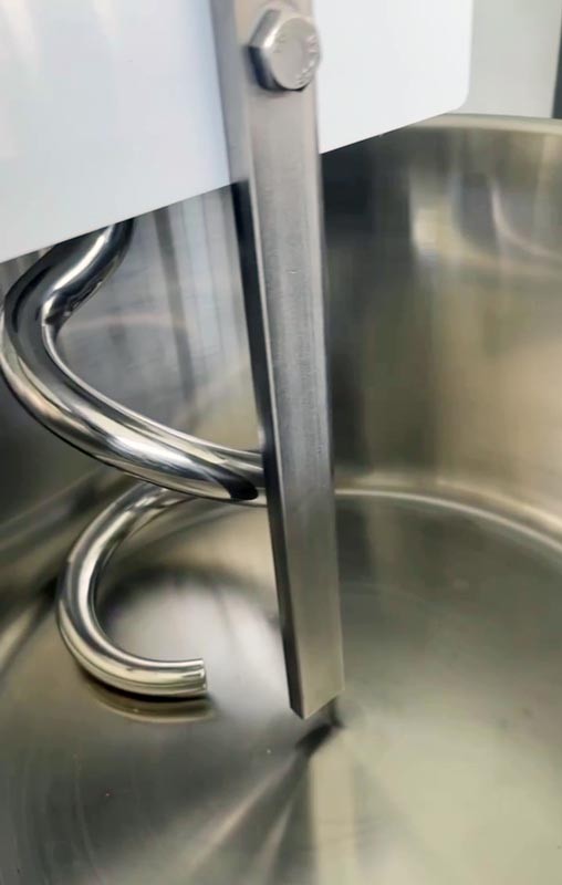 Тістомісильна машина оснащена фіксованою головою і незнімною діжею, два швидкісні режими дозволяють гнучко керувати процесом перемішування. Міцний спіральний робочий орган забезпечує рівномірний та якісний заміс. Також у стандартній комплектації передбачено таймер та колеса для зручності переміщення по кухні.