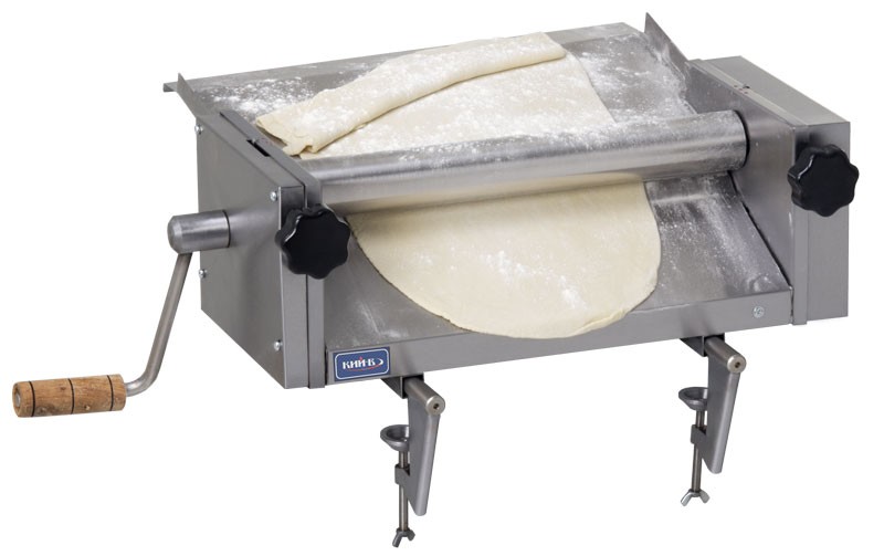 Ручна тісторозкаточна машина КИЙ-В ТР використовується для розкатування яєчного тіста, тіста під піцу, тонких коржів, а також крутого тіста для хінкалі, вареників.