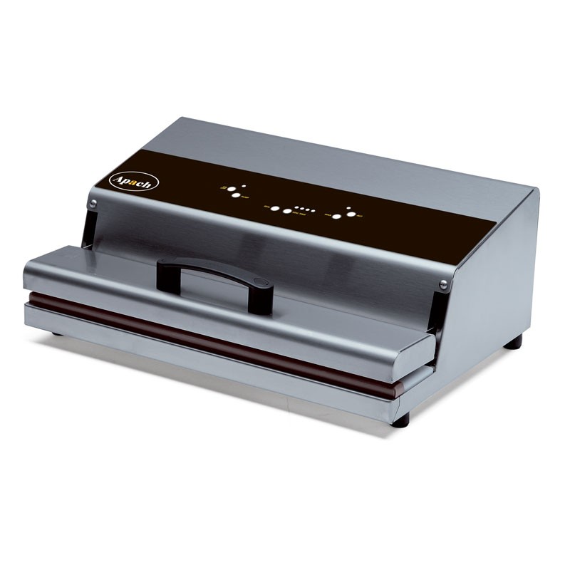 Безкамерний вакуумний пакувальник італійської торгової марки Apach з шириною запаює планки 310 мм, максимальна ширина пакета 420 мм.