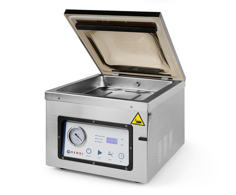 Вакуумний пакувальник Hendi 201435 придатний для вакуумної упаковки рідин і продуктів з високим вмістом води.