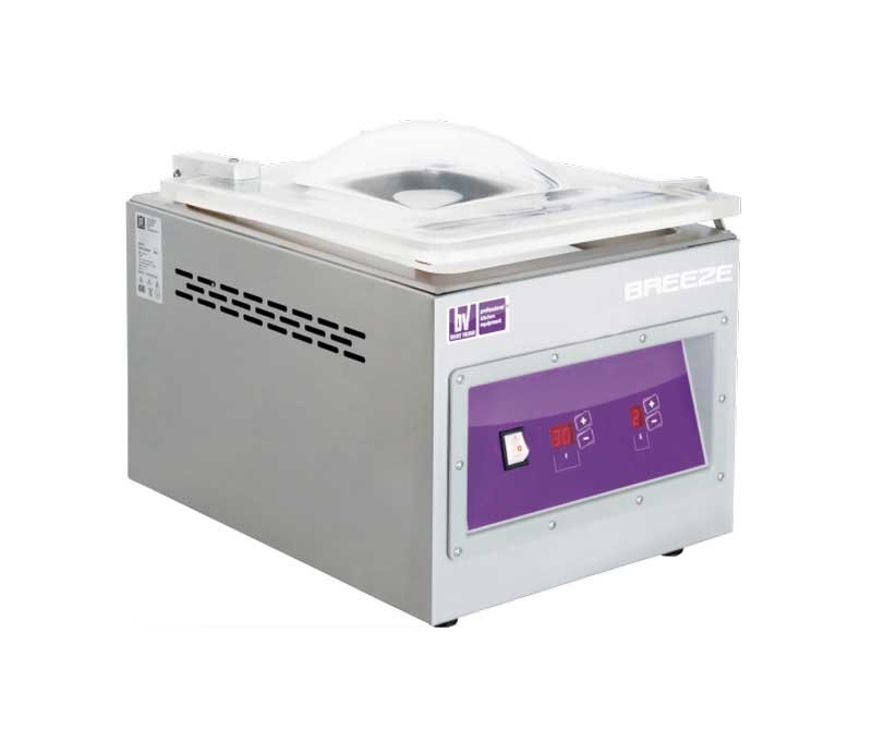 Камерний вакуумний пакувальник Besser Vacuum Breeze ідеально підходить для ресторанів і підприємств громадського харчування для вакуумування в гладкі і рифлені пакети. Лінія пакувальників Easy дозволяє отримувати якісний вакуум всього за кілька простих кроків, завдяки спрощеному управління можна встановлювати і змінювати параметри вакууму і запаювання перед кожним циклом упаковки.