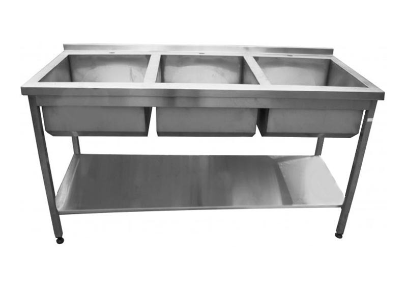 Мийка виробнича Tehma 3 секції, без полиці використовується на кухні ресторану, їдальні, кафе, пекарні.