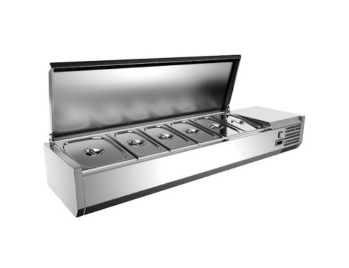 Настільна холодильна вітрина THV1200/380VD чудово підходить для короткочасного зберігання та демонстрації, попередньо охолоджених продуктів (салатів, закусок, гарнірів) у магазинах, кафе, барах, ресторанах, суші-барах. Найбільш широко застосовуються в піцеріях для зберігання топінгу (начинки для піци).