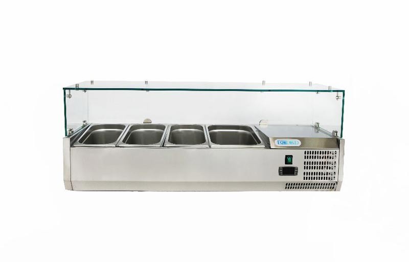 Настільна холодильна вітрина G-VRX1200-380 чудово підходить для короткочасного зберігання та демонстрації, попередньо охолоджених продуктів (салатів, закусок, гарнірів) у магазинах, кафе, барах, ресторанах, суші-барах. Найбільш широко застосовуються в піцеріях для зберігання топінгу (начинки для піци).