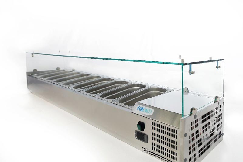 Настільна холодильна вітрина G-VRX2000-380 чудово підходить для короткочасного зберігання та демонстрації, попередньо охолоджених продуктів (салатів, закусок, гарнірів) у магазинах, кафе, барах, ресторанах, суші-барах. Найбільш широко застосовуються в піцеріях для зберігання топінгу (начинки для піци).