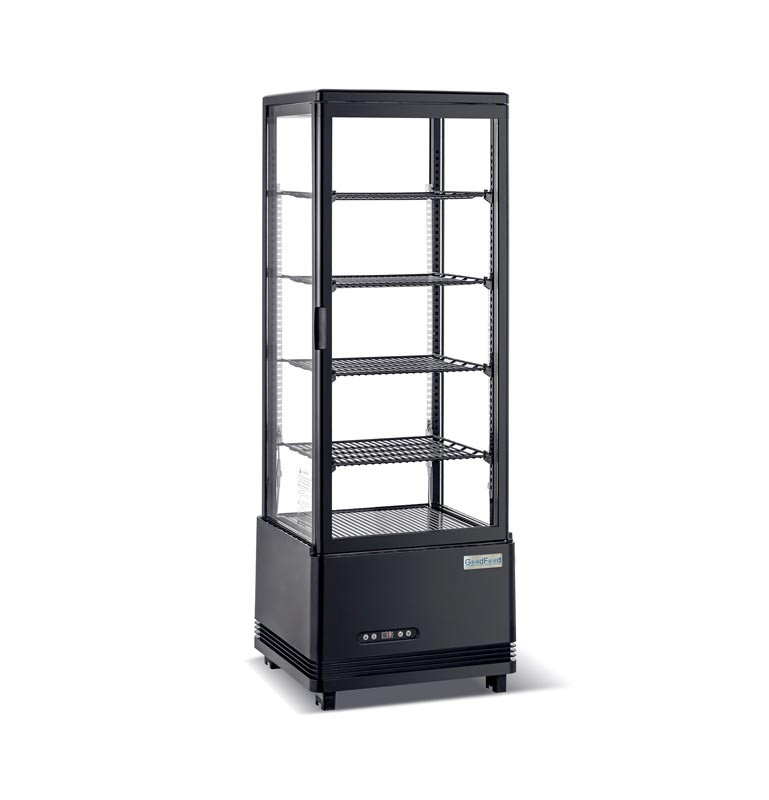 Кондитерська холодильна вітрина GoodFood RT118L чорна служить для демонстрації, охолодження та короткочасного зберігання продуктів та напоїв.