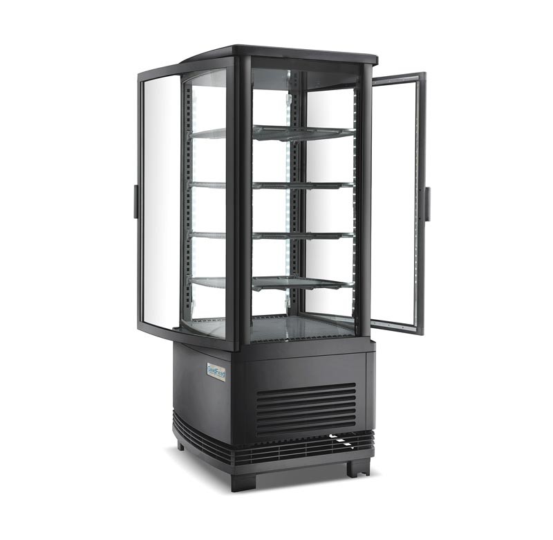 Кондитерська холодильна вітрина GoodFood RT98LR2 чорна служить для демонстрації, охолодження та короткочасного зберігання продуктів та напоїв.
