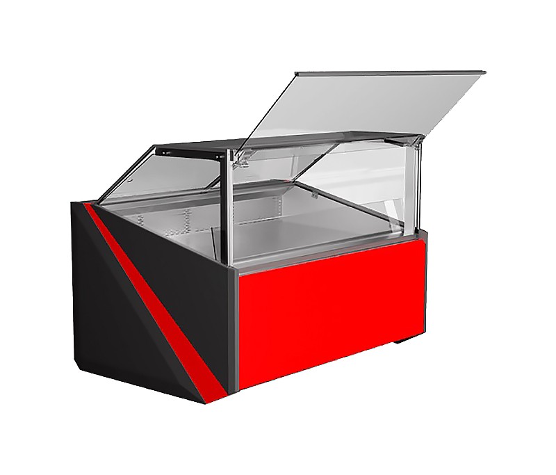 Матеріал демонстраційної частини та полиці продавця: нержавіюча сталь.