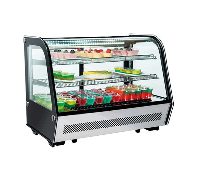 Кондитерська настільна холодильна вітрина Reednee RTW120B чудово підходить для демонстрації випічки, тортів, тістечок. Панорамний огляд та полиці з підсвічуванням представляють товар з найкращого боку.