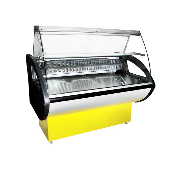 Експозиційна площа, стільниця продавця з оцинкованої сталі з полімерним покриттям (у вітрині з прямим фронтальним склом) або нержавіючої сталі у вітрині з гнутим лобовим склом.