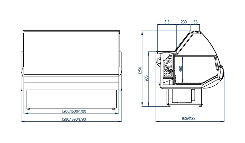 Вітрина морозильна РОСС Siena М 1,1-1,2 ВС призначена для демонстрації та зберігання продуктів харчування і напоїв на підприємствах громадського харчування і торгівлі.